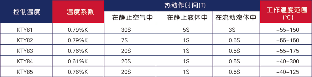 KTY84溫度傳感器芯片結(jié)構(gòu)基于擴(kuò)散電阻原理,主要成分是硅,硅天性穩(wěn)定,測量范圍內(nèi)都具有實(shí)際在線線性的溫度系數(shù),確保了溫度測量的高精確度。所以此類具有“精度高、可靠性高和穩(wěn)定性強(qiáng)以及正溫度系數(shù)”的特點(diǎn)。KTY84系列的傳感器溫度范圍是-40℃~300℃,被應(yīng)用于一些高端領(lǐng)域。如:在汽車中主要應(yīng)用于溫度測量與控制系統(tǒng)(油模塊里的油溫測量,柴油噴注系統(tǒng)、發(fā)動機(jī)冷卻系統(tǒng)的溫度測量與傳遞)﹔工業(yè)中主要應(yīng)用于過熱保護(hù)、加熱控制系統(tǒng)、電源供電保護(hù)等,特別是在電機(jī)的組和軸承上度測量已得到廣泛的應(yīng)用。